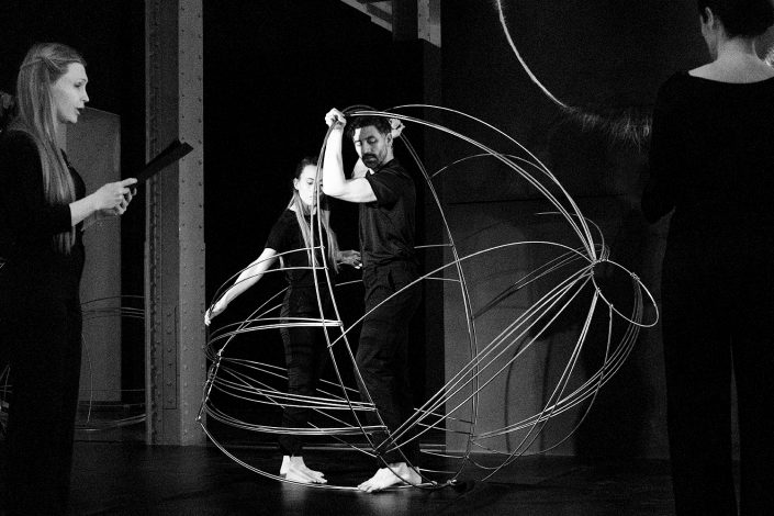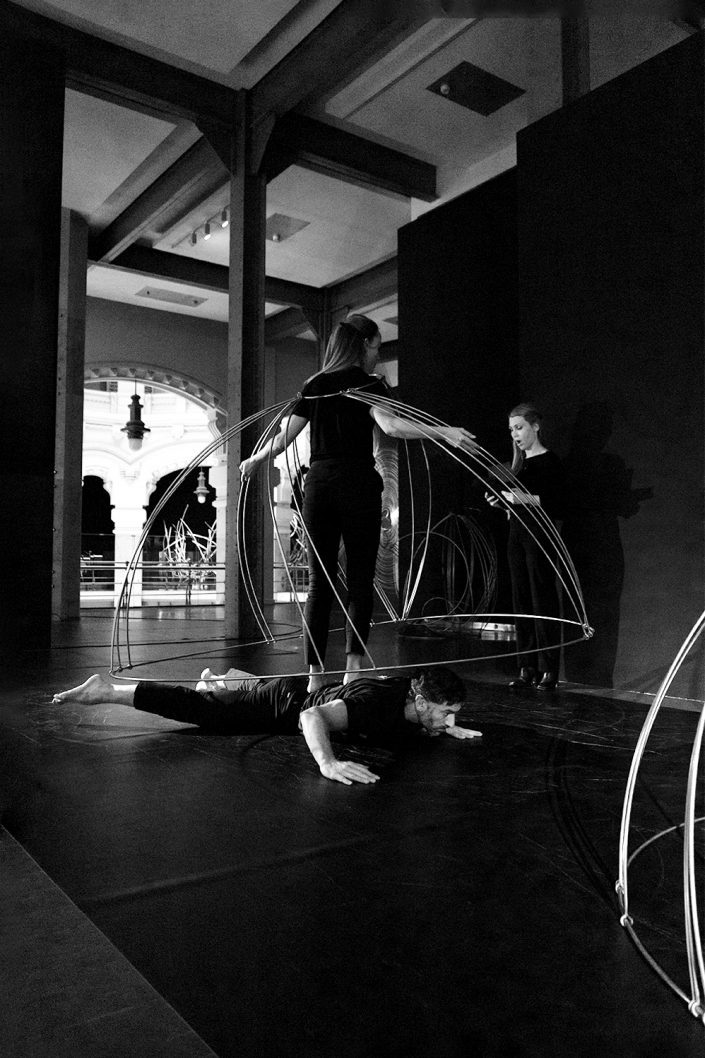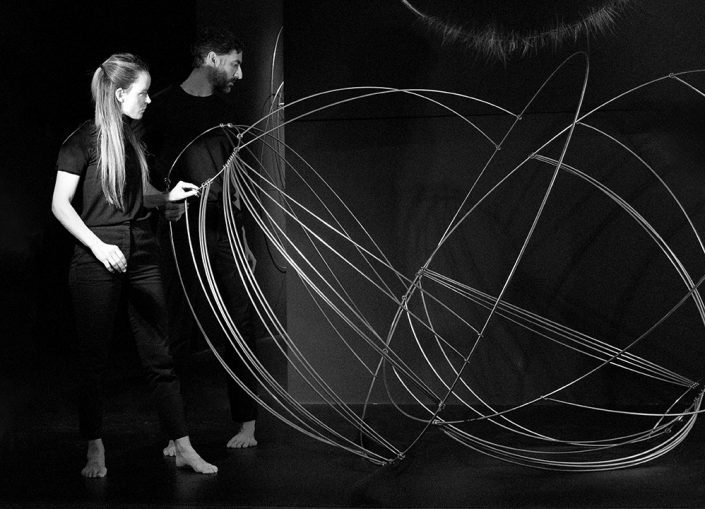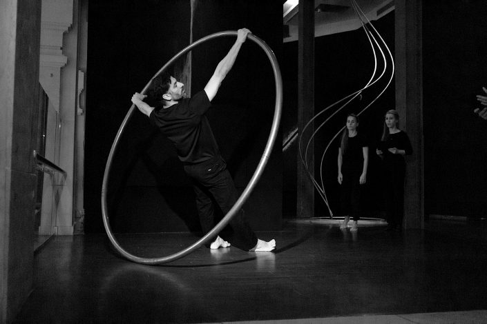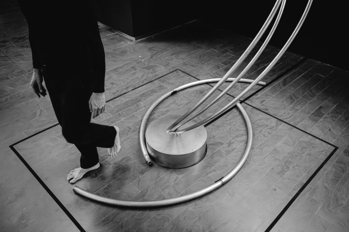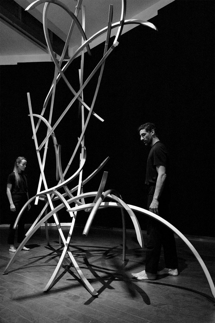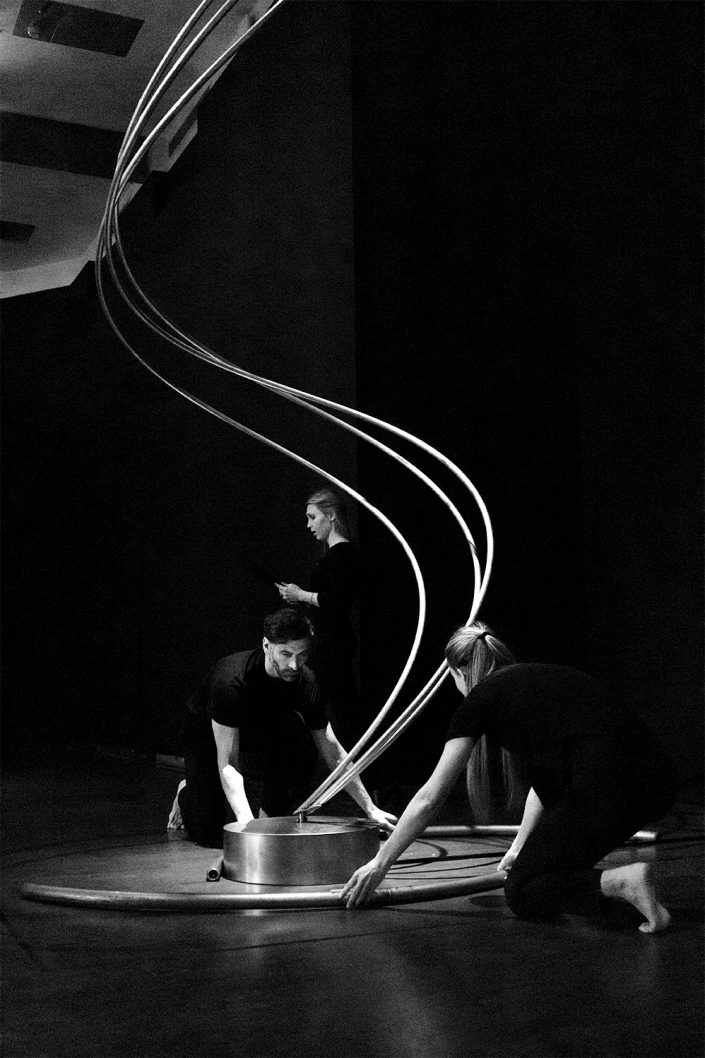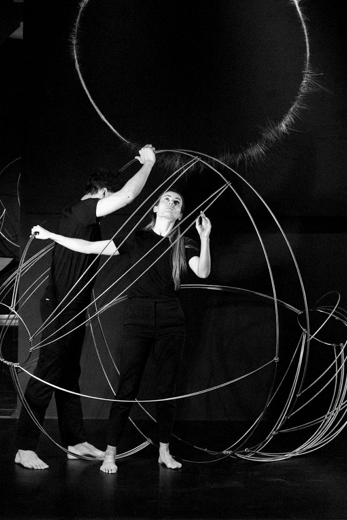 La performance Espacio. Tiempo fue presentada en CentroCentro los días 7 de marzo y 7 de junio de 2025 como parte del proyecto Origen. Dirigida por Mar Solís, durante la actuación dos bailarines recorren las diferentes áreas de la exposición, interviniendo varias de las esculturas de la exposición Origen y transformando los trazos circulares de acero en formas en evolución. La presencia física de los bailarines se entrelaza con la voz de una performer que recita textos inspirados en teorías sobre el tiempo y la materia, mientras una segunda voz cantada actúa como un coro abstracto que evoca el anhelo humano de conocimiento. La obra plantea un diálogo entre arte, ciencia y cuerpo, en el que movimiento, palabra y sonido se funden para explorar los límites de la percepción y la materia.