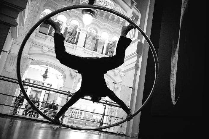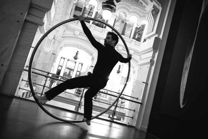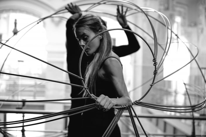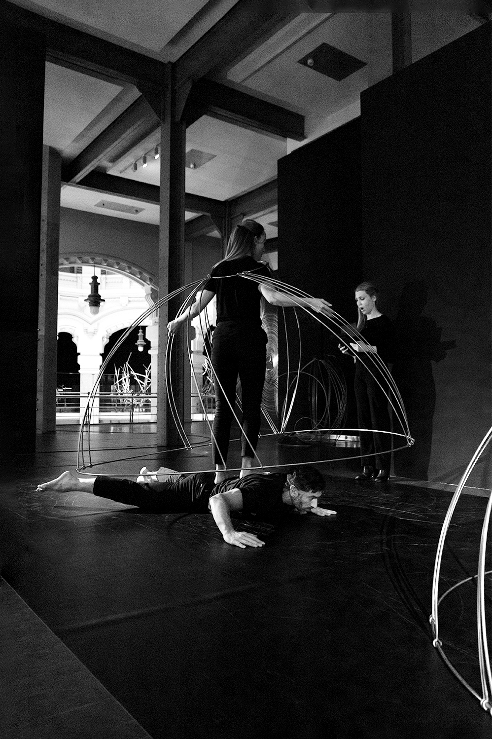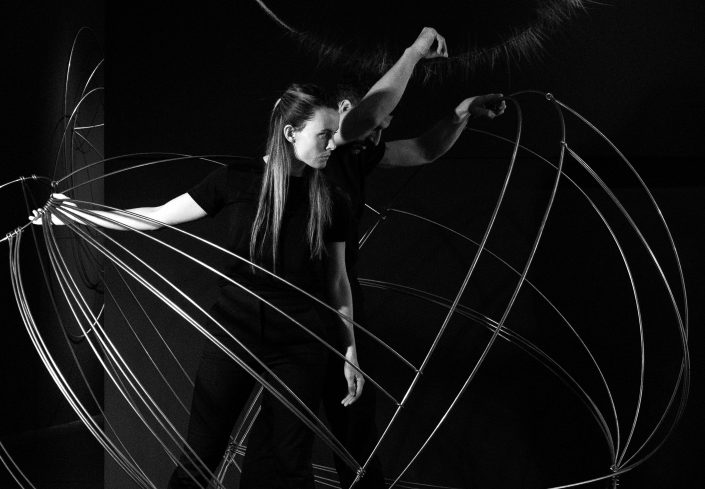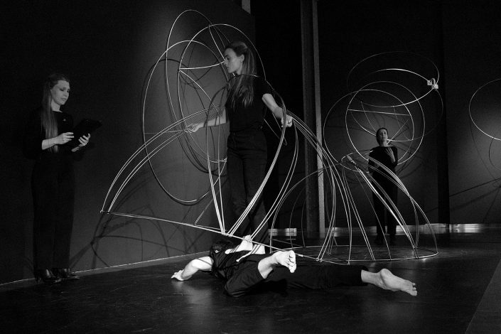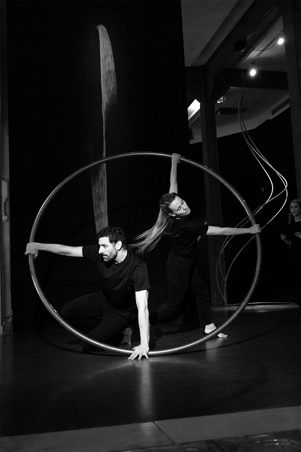 La performance Espacio. Tiempo fue presentada en CentroCentro los días 7 de marzo y 7 de junio de 2025 como parte del proyecto Origen. Dirigida por Mar Solís, durante la actuación dos bailarines recorren las diferentes áreas de la exposición, interviniendo varias de las esculturas de la exposición Origen y transformando los trazos circulares de acero en formas en evolución. La presencia física de los bailarines se entrelaza con la voz de una performer que recita textos inspirados en teorías sobre el tiempo y la materia, mientras una segunda voz cantada actúa como un coro abstracto que evoca el anhelo humano de conocimiento. La obra plantea un diálogo entre arte, ciencia y cuerpo, en el que movimiento, palabra y sonido se funden para explorar los límites de la percepción y la materia.
